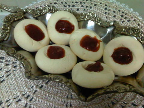 - In my case, I melted 'goiabada' which is a Brazilian jam-like sweet derived from the red guava. It comes in blocks looking like this. Used a few pieces and added a couple of tablespoons of water and put them to met on high heat. Then placed half teaspoon in the middle of each cookie.